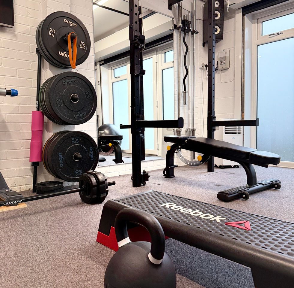 Setting myself apart from other local PTs, my 1-2-1 private studio offers a safe, comfortable and unintimidating place to train. Whether you are a seasoned gym goer looking for a space to focus on your training without distraction or if you're on a new fitness journey and want a quite and personal space without the crowds, then my studio will offer the solution. Filled with a range of cardio equipment, studio weights, Olympic barbell weights, squat rack, dumbbells, kettlebells and a resistance cable machine I can cater for all workouts.